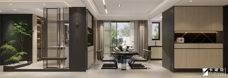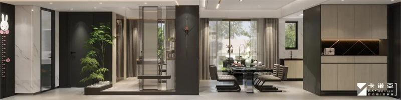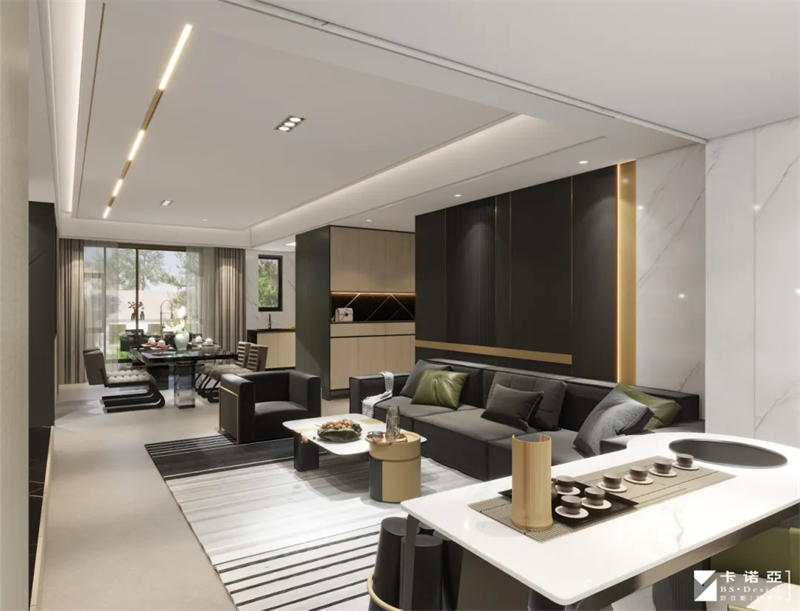去客廳化設計,客廳與陽臺之間茶臺隔斷,構筑一個最美的品茶區(qū) ,客廳可同時滿足會客、辦公就餐,以及兼顧茶室功能,不再將客廳功能固化,而是讓業(yè)主按照自己的使用習慣和生活方式進行隨意使用。
