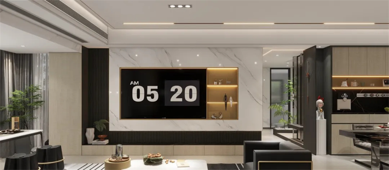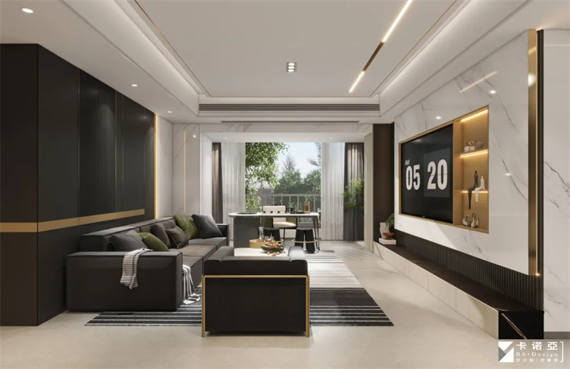 客廳設計拒絕傳統(tǒng)單一,采用懸浮柜+半開放柜組合的方式,構建客廳收納美學。半開放柜可陳列雜志書籍,可展示心愛手辦、潮玩,賦予空間N+1的功能,每一處細節(jié)都精致熨帖。