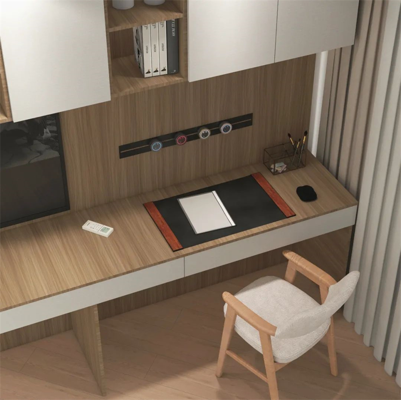 ??床尾選擇做衣柜+書桌柜一體化設計,看書、練書法、看電視,在家悠閑樂享時光?