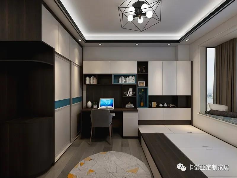 榻榻米、衣柜、書柜、書桌一體化設計,