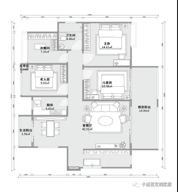 為了兼顧父母的傳統審美需求,特意采用具有中式韻味的御品木、水波紋古銅拉手、亞麻布紋等元素。
