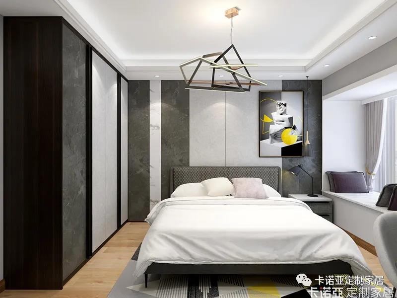 卡諾亞木光之城搭配黑金剛、漢白玉及灰姑娘組成的護墻板,在客廳里占據極其顯眼的位置,改變白墻的單一視覺。灰色一字型電視矮柜,與墻面遙相呼應。