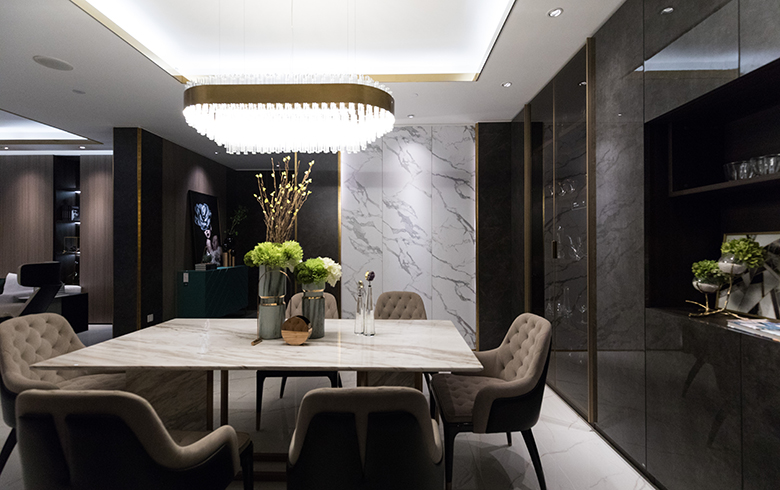 門廳護墻系統徜徉在經典與現代之間,行走在時尚的天平上,平衡著功能性與時尚美感,它是摩登而優雅的,將這種自然而富有美感的設計與傳統本土情懷結合,金屬黃銅線裝飾與木質天然紋理渾然一體,彰顯著華貴的生活氣息,低調而奢華。