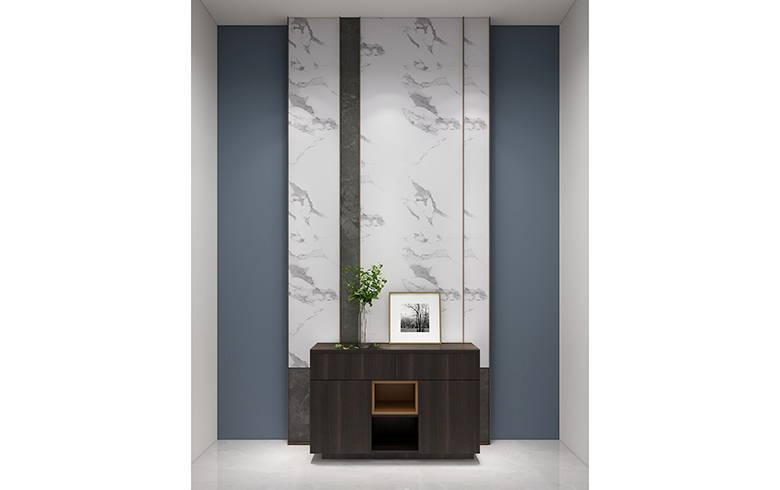 極簡風格過道護墻系統,成為家中一道靚麗風景線。采用白色、灰色、深木色混搭,由淺入深,充滿了視覺的張力,中間采用棕色皮紋腰線,設計開放式展示柜,可擺放各類飾品、綠植及書籍,好看又實用。簡潔的線條,精致耐看的裝飾細節,前衛、時尚、與眾不同,空間更出彩。