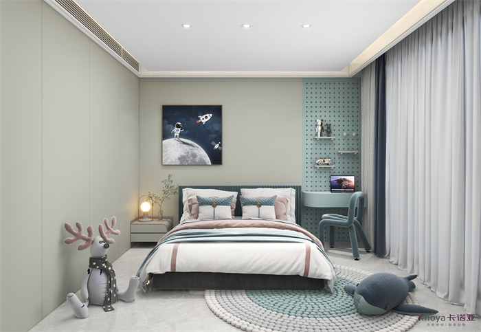 本案設計圍繞客戶的需求,打造出一個簡約優雅的空間。同時,圍繞小主人公成長加入趣味,運動等主題,拆除多余墻體,合理規劃空間,人體動態路線便捷。空間多元化收納,功能分區明顯。