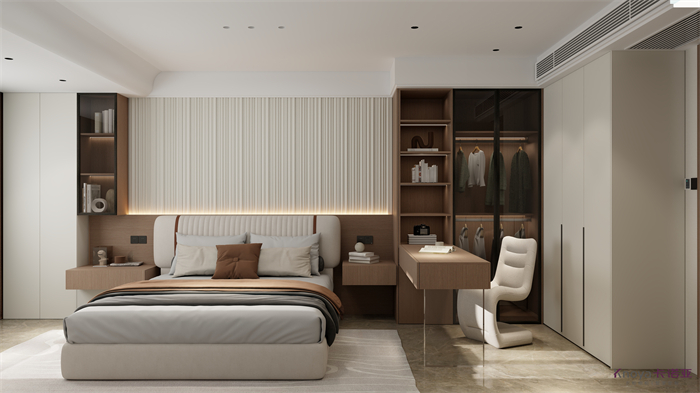 作品簡介:色彩上以自然明亮的色調(diào)為主要選擇,如米色、原木色、米白色、灰色以及米黃色等。在材料的選擇上,自然元素如木材、銅、純棉以及手工編織的織物是常見的材料。整體風(fēng)格上旨在,混合紋理和面料能夠增強房間的質(zhì)感和視覺效果。使這個空間呈現(xiàn)出來多樣化的,包容性強的空間氛圍。在精致低奢的前提下代入一些生活美學(xué)的魅力。簡約、低調(diào)且時尚是其特點。