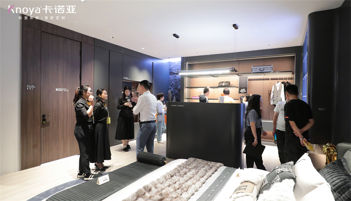 在本屆展會卡諾亞展館,現場觀眾通過沉浸式體驗兩大重磅新品:輕法式風格逐夢系列+意式輕奢風格紳·逸系列,充分領略了卡諾亞“臥室系統+整家定制”的產品優勢。