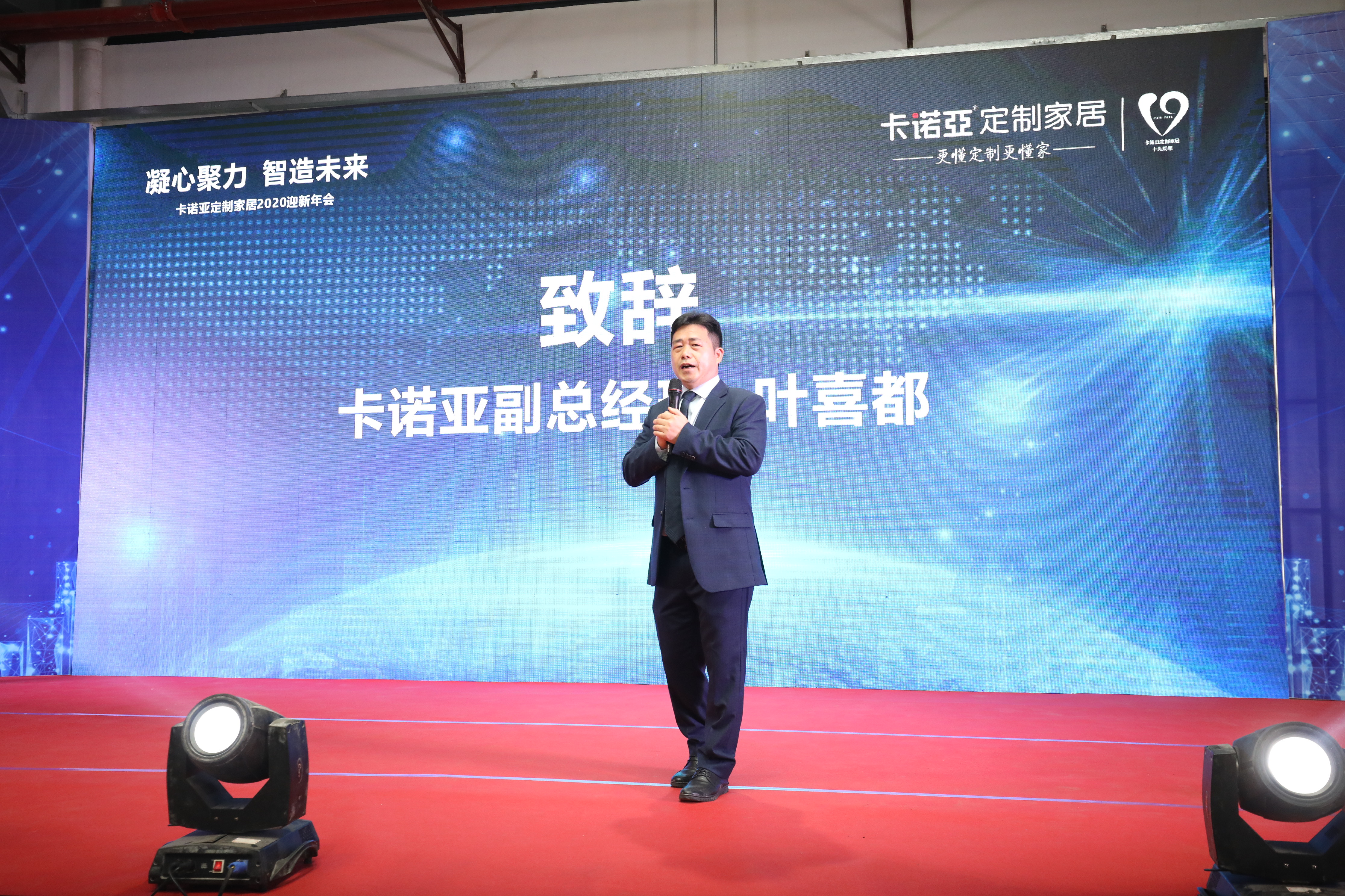 2020年1月10日,“凝心聚力,智造未來”卡諾亞定制家居2020迎新年會,在卡諾亞清遠工業4.0智造基地隆重舉行,共有1500余人參加了此次活動。卡諾亞董事長兼總經理程國標先生應邀作為領導嘉賓出席會議并作重要致辭,出席會議的還有執行董事吳紹華女士、副總經理兼生產中心總經理葉喜都先生、副總經理兼營銷中心總經理賴永精先生、營銷中心副總經理李偉明先生等高層,以及其他董監高。