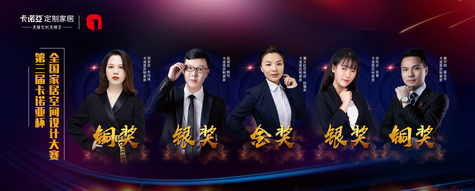 經過評委評分匯總統計,本次決賽金銀銅獎得主誕生,他們分別是:金獎的金牌設計師獲得者貴州遵義紅花崗店趙福英,銀獎的卓越設計師獲得者湖南瀏陽店肖青、江蘇鹽城店楊陽,銅獎的杰出設計師獲得者卡諾亞商學院莫志平、陜西西安店牛巧祎。