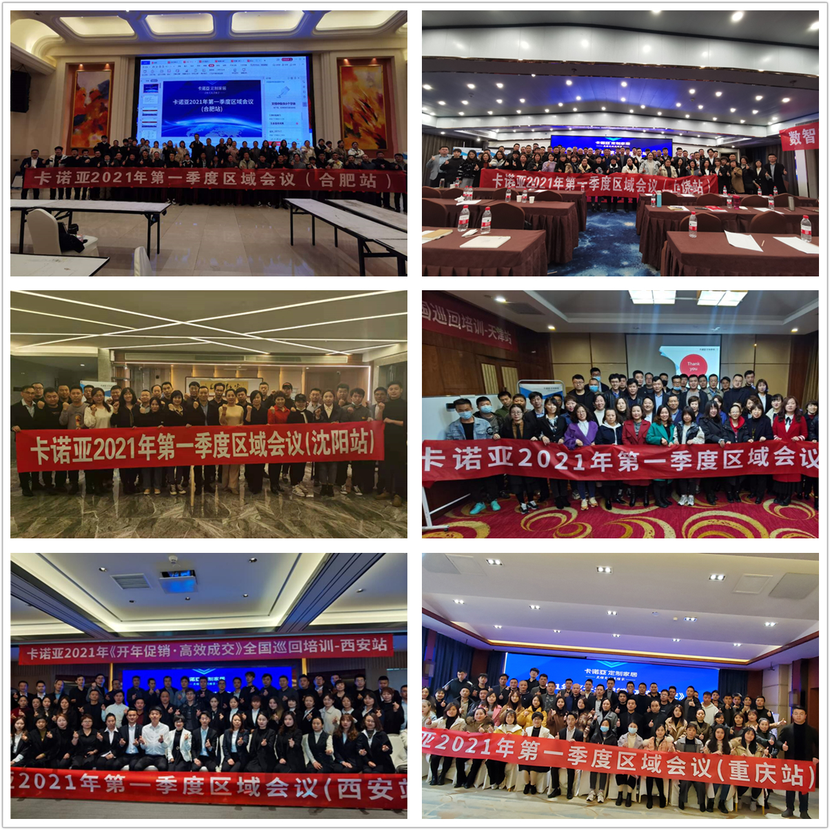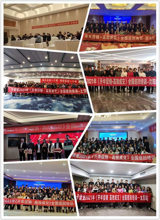 據(jù)悉,卡諾亞定制家居2021年第一季度區(qū)域會議暨開年促銷高效成交全國巡回培訓(xùn),分別在沈陽、西安、天津、太原、重慶、廣州、長沙、武漢、鄭州、濟南、上饒、合肥等近20個城市圓滿舉行。